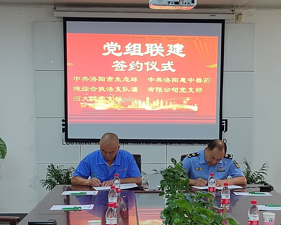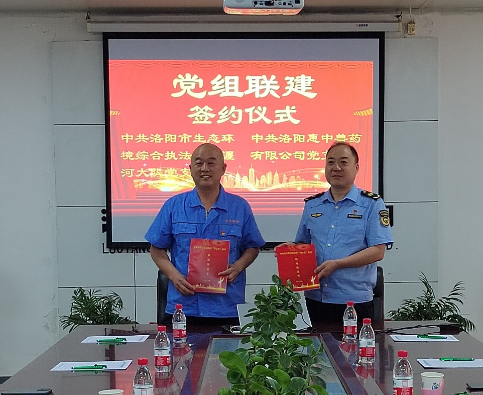 惠中獸藥與洛陽市生態(tài)環(huán)境綜合執(zhí)法支隊瀍河大隊舉行黨組聯(lián)建簽約儀式