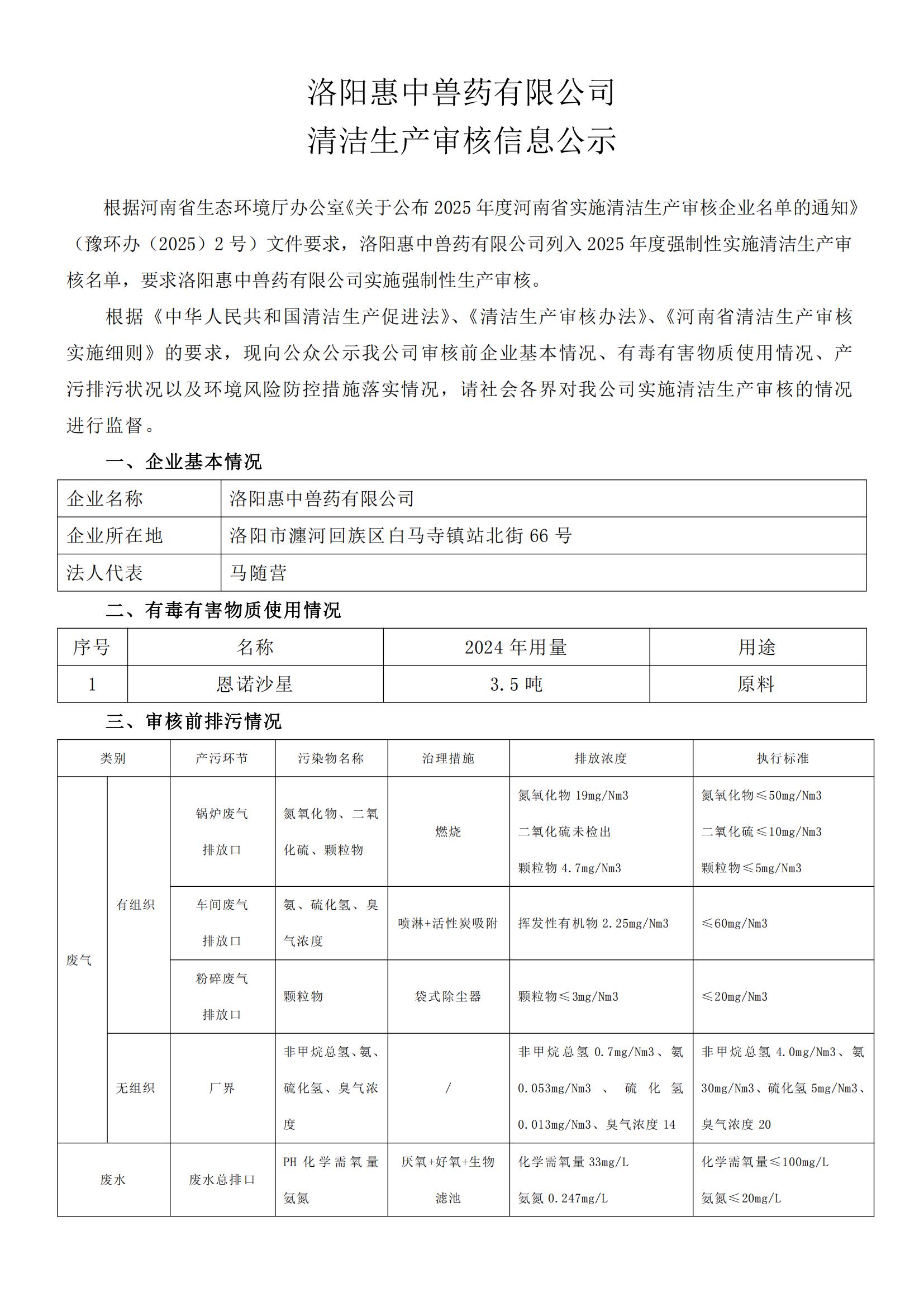 惠中獸藥清潔生產審核信息公示